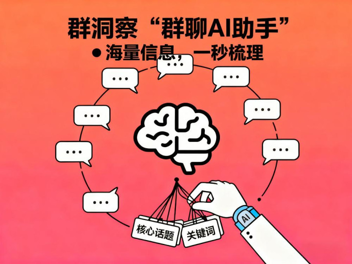 ●海量信息,一秒梳理:再也不用爬楼!群洞察能自动识别并归纳群内讨论的核心话题、关键词,让你对每日热议内容一目了然。